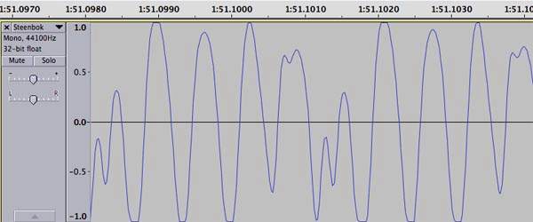 Pay attention to the time scale at the top of the next graph again. The next one is only 6 milliseconds. Some sounds were recorded by the seller with the gain too high. The wave bumps against the top and bottom of the medium. The tips are flattened or "clipped." It changes the sound and adds a "ripping" noise that is called distortion. It's physically impossible for a speaker to accurately reproduce clipped sounds.