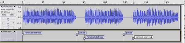 Here's another sound, a Byron South continuous live distress recording, edited by me with even shorter call sequences and shorter quiet spaces, just enough to find the pause button. Imagine that each of the pauses is extended to two minutes and it's easy to see that the whole file will be played less than twice through a 12-minute stand.