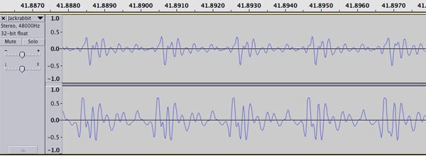 Here's a true stereo jackrabbit shown below, the same sound through 2 microphones into 2 channels.